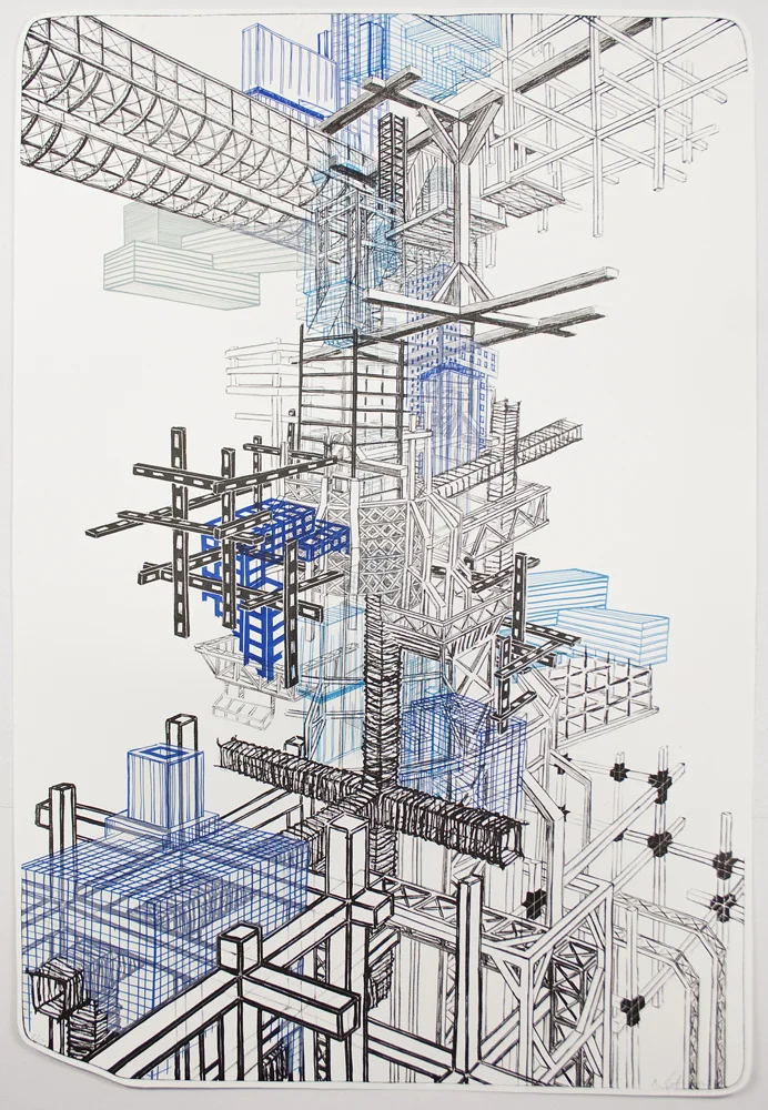 Nicola Lopez, "Infrastructure #1", 5 color lithograph. 30" x 44". Published by Tamarind Institute 2012. Alex Kirillov, collaborating master printer.