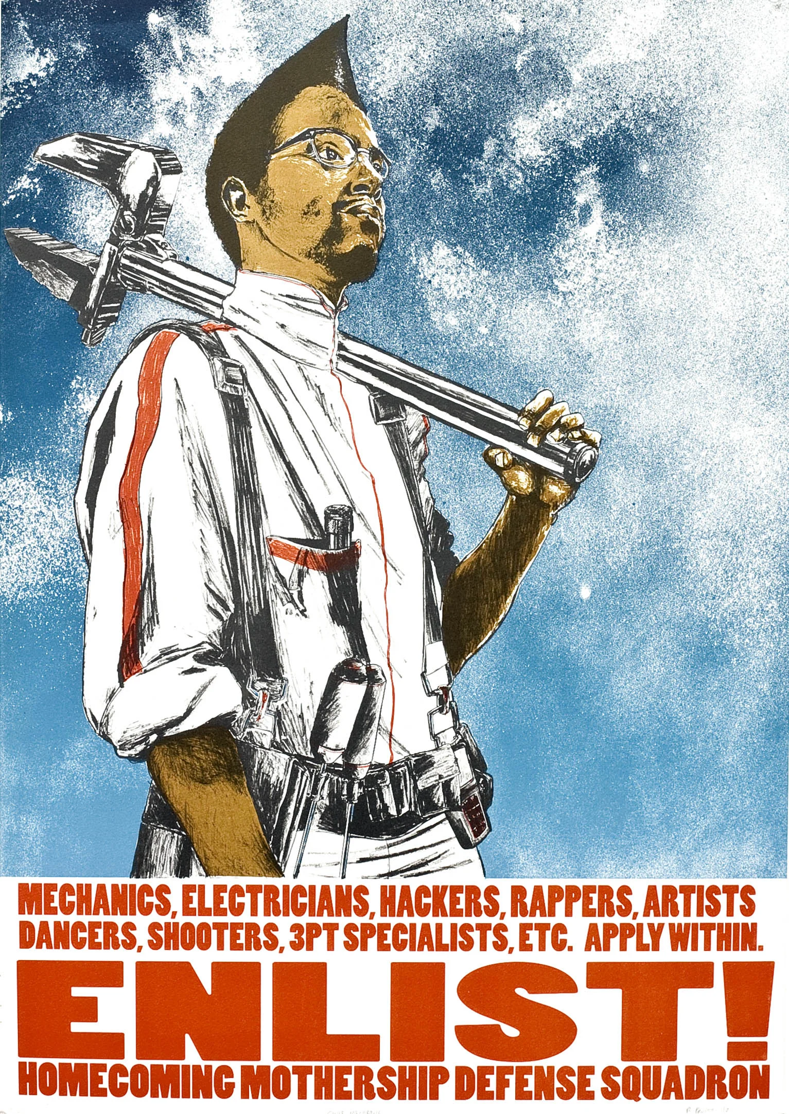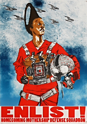 Robert Pruitt, "Star Pilot", 5 color offset lithograph, 21" x 30". Published by Brandywine Workshop 2012. Alex Kirillov, collaborating master printer.