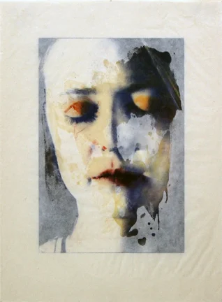 Stephanie Brunia, "Untitled". 5-color unique egg albumen photo-lithograph with hand-applied wax on Thai Kozo. 17x24. Published by University of New Mexico, 2011. Alex Kirillov, collaborating printer.