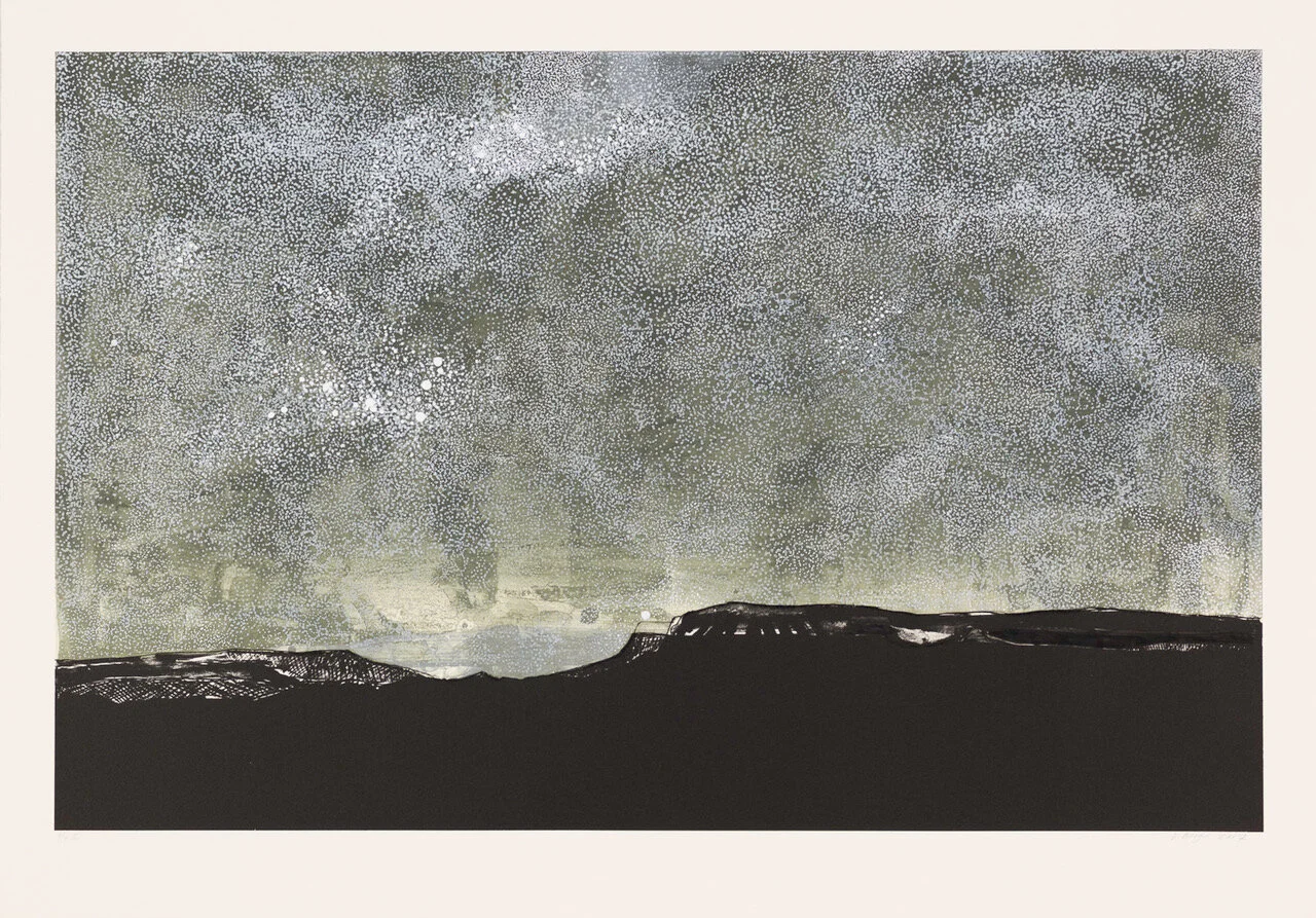 Victoria Burge, "Vega", 6 color lithograph with hand coloring on Arches Cover. 37" x 26". Published by Stonefox Editions. Alex Kirillov, collaborating master printer. 2018